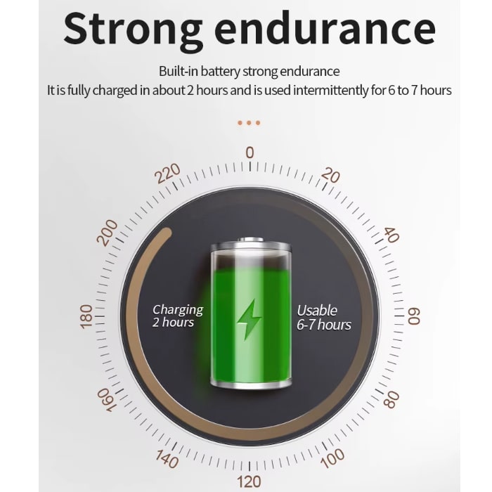دستگاه با استفاده از کابل شارژ (و آداپتور مربوطه) که در بستهبندی محصول موجود است، به برق شهری متصل شده و شارژ میشود. یک نشانگر LED روی دستگاه وضعیت شارژ را نمایش میدهد. پس از شارژ کامل، باتری داخلی دستگاه قادر است تا 8 ساعت (بسته به میزان استفاده و تنظیمات تایمر) به صورت بیسیم و مداوم کار کند. زمان شارژ کامل معمولاً بین 2 تا 3 ساعت است.