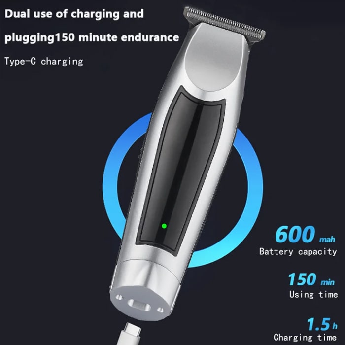 - باتری با ظرفیت بالا و عملکرد طولانی: مجهز به باتری لیتیوم-یون با ظرفیت 600 میلیآمپر ساعت، این ماشین اصلاح قادر است پس از یک بار شارژ کامل، تا 150 دقیقه (معادل 2.5 ساعت) به طور مداوم کار کند. این مدت زمان کارکرد فوقالعاده، آزادی عمل بینظیری را برای چندین بار اصلاح بدون نیاز به شارژ مجدد فراهم میکند.